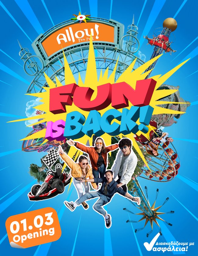 Το Allou! Fun Park επιστρέφει δυναμικά και είναι έτοιμο να σου προσφέρει και πάλι μοναδικές εμπειρίες ψυχαγωγίας!